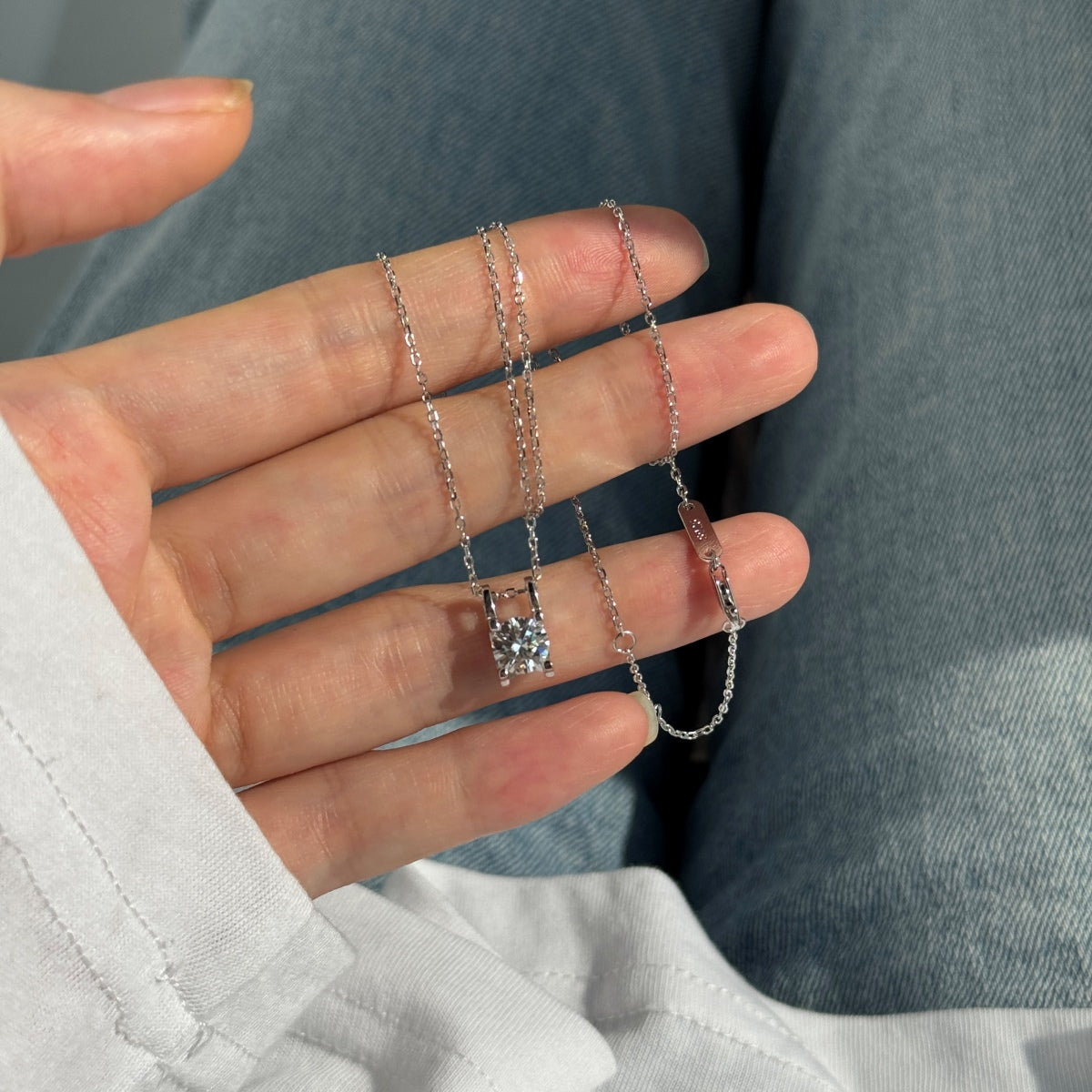 Collier en argent massif 925, sublimé par une moissanite VVS1 blancheur D, reconnue pour sa brillance supérieure au diamant.